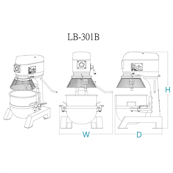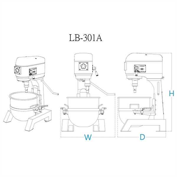 | LB-301A | 1HP / 0.75kw | 30L / 6Kg | 60 cycle motor | NO | 62x70×101 | 73×73×118 | 134 | ||